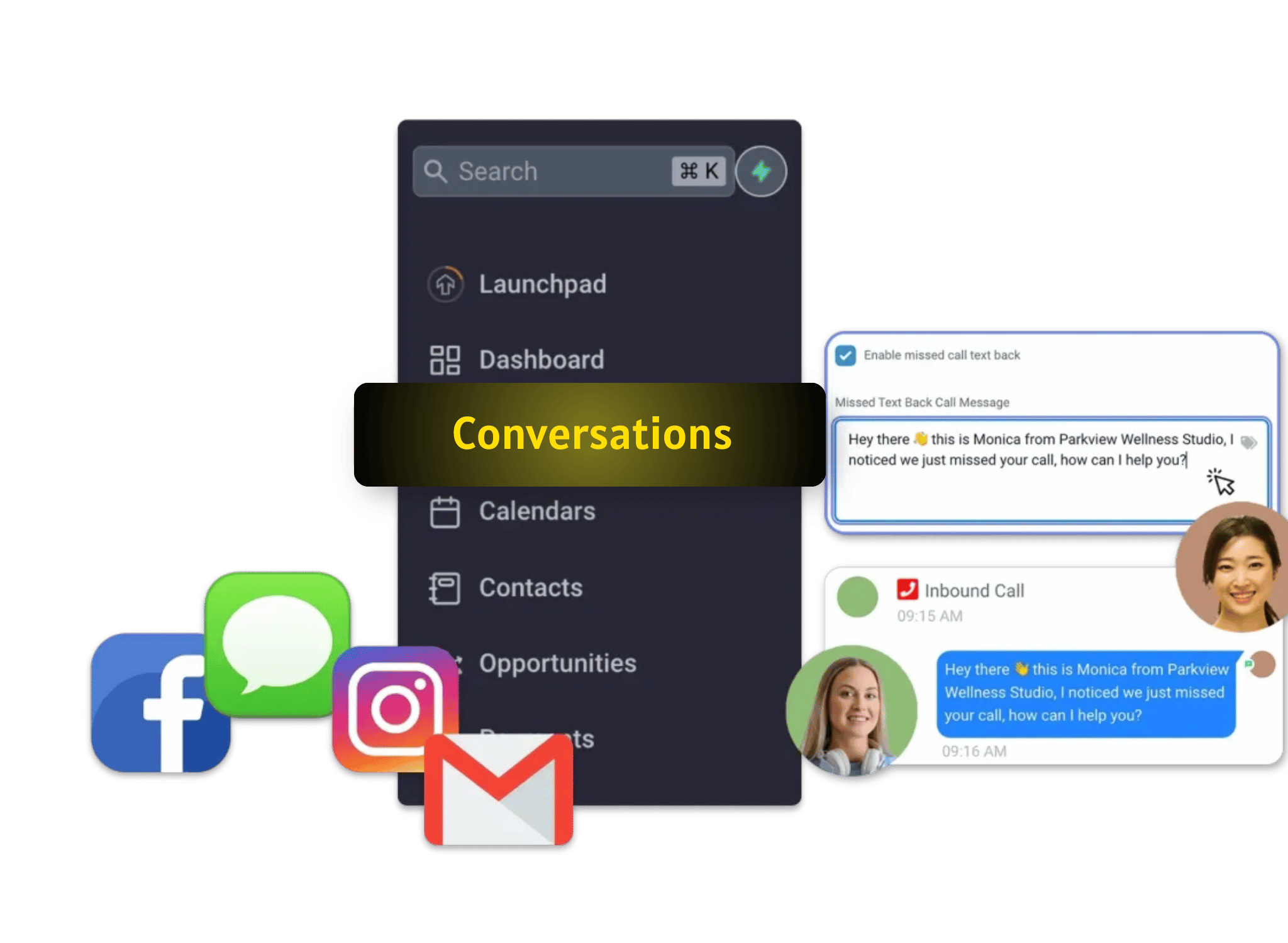 Reply to your Facebook messages, Instagram DMs, SMS, WhatsApp conversations, and Emails from one integrated inbox. Never let a prospect slip through the cracks again.