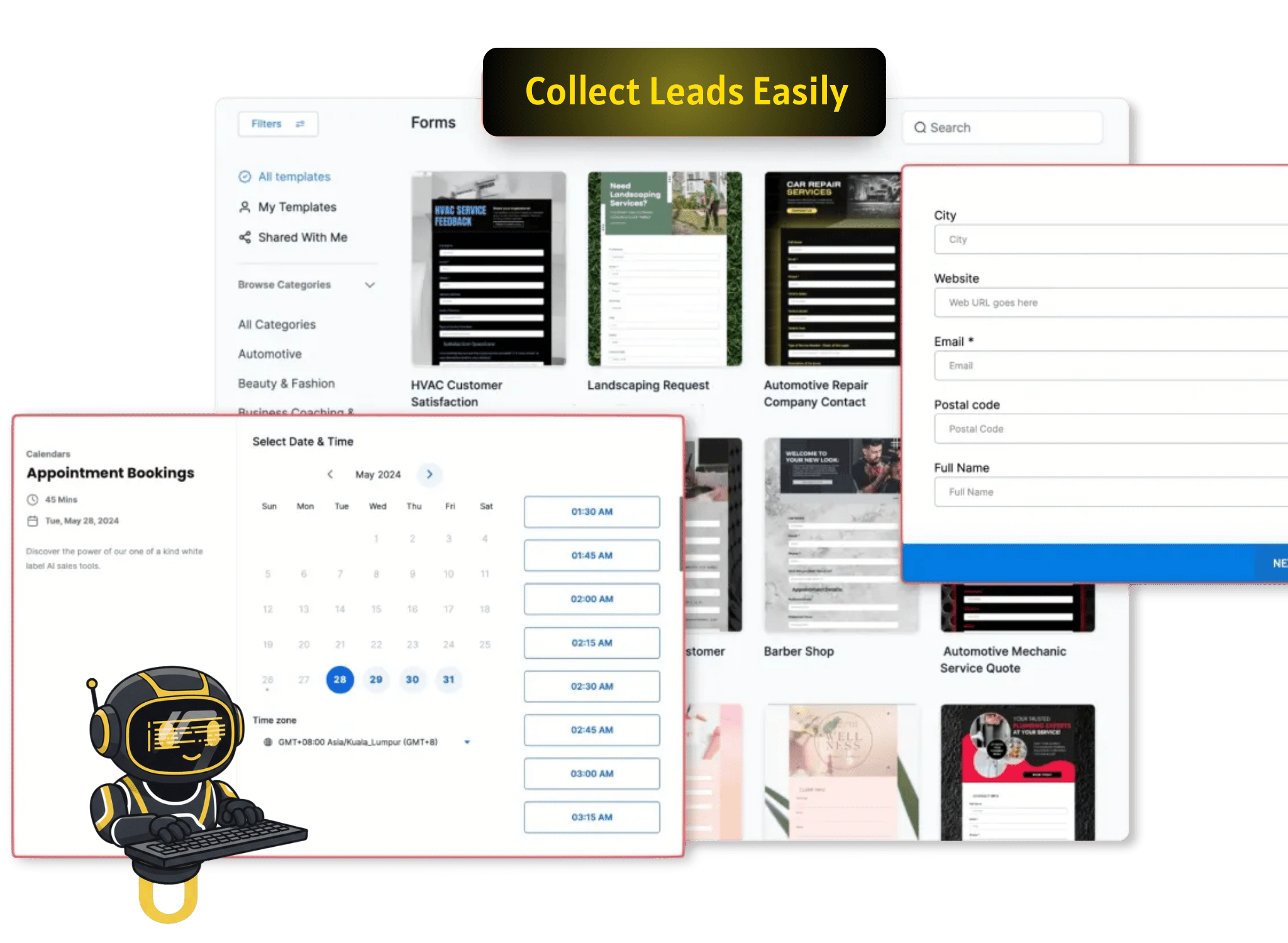 Create highly-engaging forms, survey and booking calendar that get clients to get in contact with you.